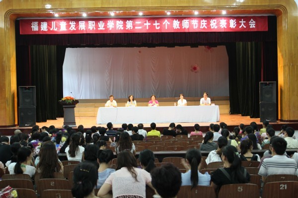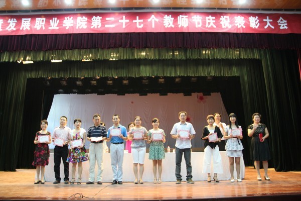 在全国第27个教师节来临之际,9月9日,我院隆重召开庆祝教师节暨表彰大会,对一年来在教育战线上涌现出来的先进集体和先进个人进行表彰。省教育厅正处级调研员、人事处戴颖副处长应邀出席了庆祝表彰大会,全院300多名教职员工一同参加了会议。