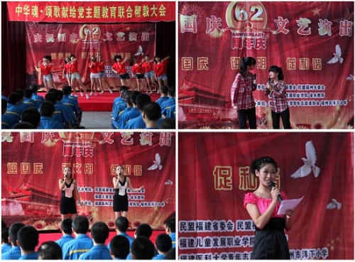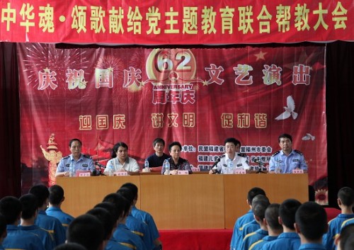 9月26日下午,在国庆节即将来临之际,民盟福建省委会与我院联合在福建省未成年教养人员管理所举办迎国庆联合帮教活动,通过联合开展帮教活动,让未教所的学员们过一个健康快乐的节日。民盟福建省委专职副主委陈榕、省司法厅劳教局副局长陈友瑜、未教所相关领导出联合帮教大会。我院团委胡华荣副书记带领我院演出队伍近40人参加了此次活动。