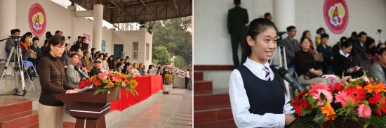 随后,教师代表、公共教学部梁蓉老师和学生代表、学前系093班张丁玲同学分别上台发言,表达了全体师生对积极参加本届科技文体艺术节及第五届田径运动会的决心和良好的祝愿。