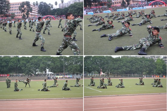 在主题表演过程中,我院共建单位武警福建总队直属支队的官兵也应邀表演了擒拿格斗术。他们的这次友情表演,显示了武警官兵的过硬军事技能,展示出他们刚毅顽强、勇猛无敌的战斗风采。
