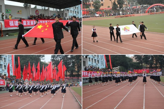 上午8:30,举行入场式。在鲜红的五星红旗引导下,会旗、鲜花、红旗等方阵相继进场,把会场映衬得色彩斑斓、多彩多姿、醉眼醉心;随后行进的裁判员以及学前系、外语系、艺术系、人文系等运动员队伍,他们英姿飒爽、热情奔放,展示了我院师生良好的精神风貌。