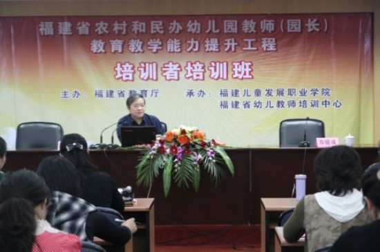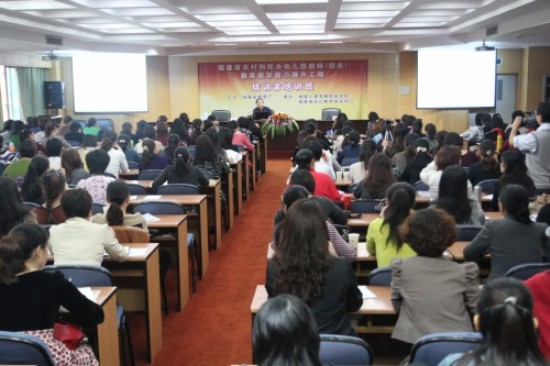 据悉,自去年11月份工程启动以来,我院秉承创先争优精神,主动融入海西建设的时代主题,以百年幼教师资培养、培训积淀,主动承担起我省幼教师资队伍建设研究与实践探索的责任。先行先试举办了4期农村幼儿园骨干教师培训、3期农村和民办幼儿园骨干园长培训,培训骨干教师373名、骨干园长223名;开展学前教育"名师送培下乡"活动,先后送培到平潭、诏安、松溪、政和、古田、清流、光泽、霞浦等项目县,培训边远乡镇、山区、海岛幼儿园园长与教师1918人;着手开展我省学前教育远程培训平台建设,形成了我省农村和民办幼儿园教师(园长)教育教学能力提升计划实施办法、培训方案与专业资源,为全面实施"福建省农村和民办幼儿园教师(园长)教育教学能力提升计划"提供专业支持,为推动福建省学前教育事业健康、和谐发展做出了突出贡献。