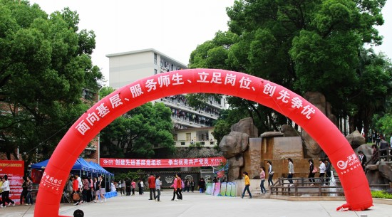 4月27日下午,机关党总支第五党支部积极响应学院党委提出的"下基层、解民忧、办实事、促发展"的号召,在师源广场举办了"面向基层、服务师生、立足岗位、创先争优"大型服务活动。