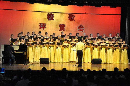 5月17日,我校在大礼堂举行校歌评赏会。校领导、音乐专业教师、教代会代表、工代会代表和学生代表800余人参加了评赏会。