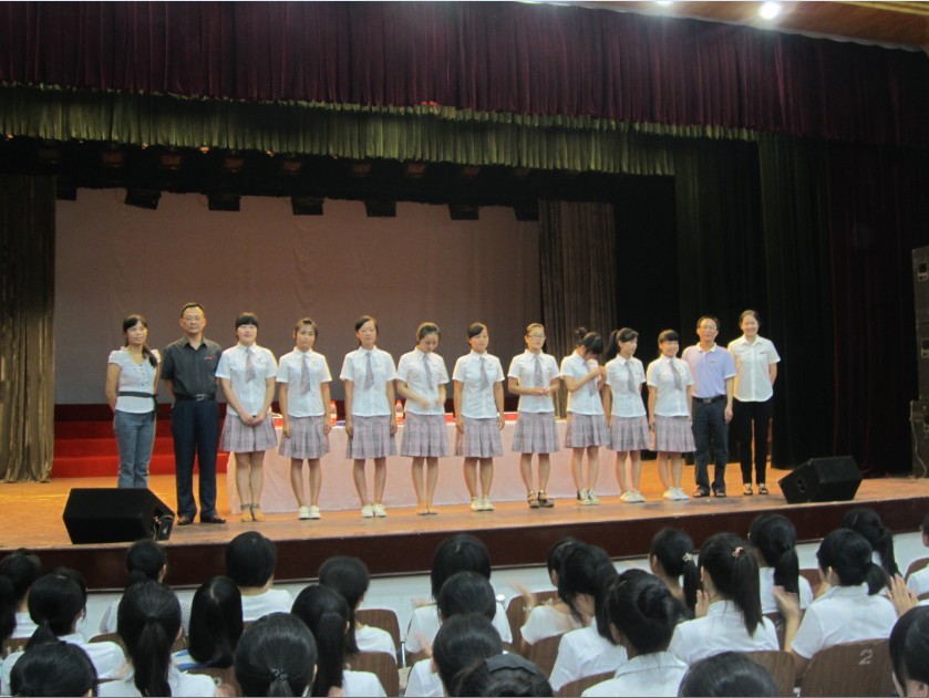 严桂泉书记最后做发言,他给同学们提出8个字的期望:成长、关爱、大气、活泼。希望每位同学能够为了目标努力学习努力实践,一点一滴进步。希望同学们能够珍惜同窗之情,少些计较,多些关爱,学会大度,锻炼自己。