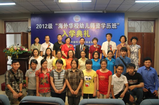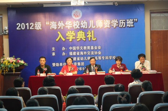 9月13日上午,我校举行2012级"海外华校幼儿师资学历班"入学典礼。中国华文教育基金会副秘书长卢海斌、福建省海外交流协会副会长闵慧君、校长陈华教授、副校长郑健成教授,学校相关处室系部负责人、师生代表80余人出席了开班仪式。