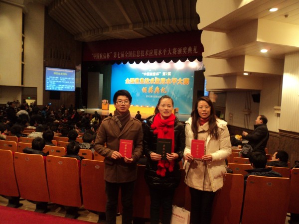 月16-18日,由教育部教育管理信息中心主办的"第七届全国信息技术应用水平大赛"决赛在北京隆重举行,我校人文科学系计算机教育专业余嘉靖同学在决赛中荣获全国Flash动漫设计二等奖,刘建炜老师获得最佳指导教师奖,陈璟老师获得优秀指导教师奖。
