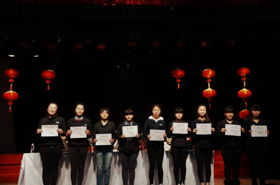 之后王萍萍书记宣读了艺术系2012-2013学年上学期优秀学生表彰决定,随后进行简单而隆重的表彰仪式,全系近80名的同学上台领取了荣誉证书。