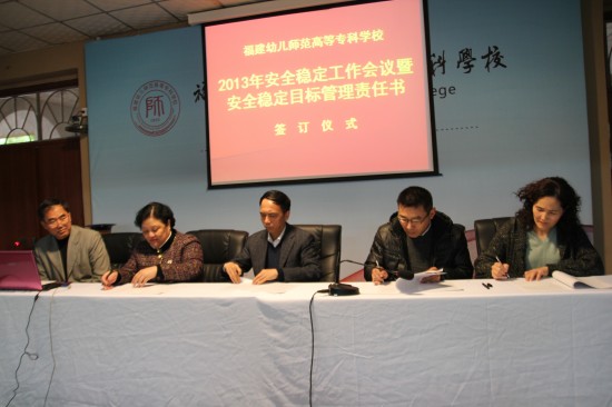 会上,举行了安全稳定目标管理责任书签订仪式,林雨书记、陈华校长分别与分管副校长、各系、处(部)、附属单位负责人签订了安全稳定工作目标管理责任书。