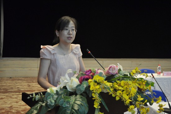 本次讲堂邀请我校2012届外语系优秀毕业生赖艺凤做主题报告。赖艺凤现任教于平和县五寨中心小学,她的英语"走教"事迹被新华网、东南网、漳州电视台等媒体报道,引起了广泛关注。赖艺凤结合在校期间的求学经历,讲述了"走教"中提升孩子们英语学习能力、指引孩子们成长的事例,谈及了从教一年多来的体会和感悟。一个个真实鲜活的事例娓娓道来,一个阳光真实、乐于奉献、有责任感的优秀教师形象栩栩如生。事迹报告深深的打动了现场的师生,热烈的掌声经久不息。报告会上,学工部吴金华部长宣读了师德倡议书,期望广大同学志存高远、言传身教,牢记教师使命,成为后学的师表和全社会的榜样。外语系党总支唐川副书记领诵师德承诺,外语系王蔷老师畅谈师德感悟。
