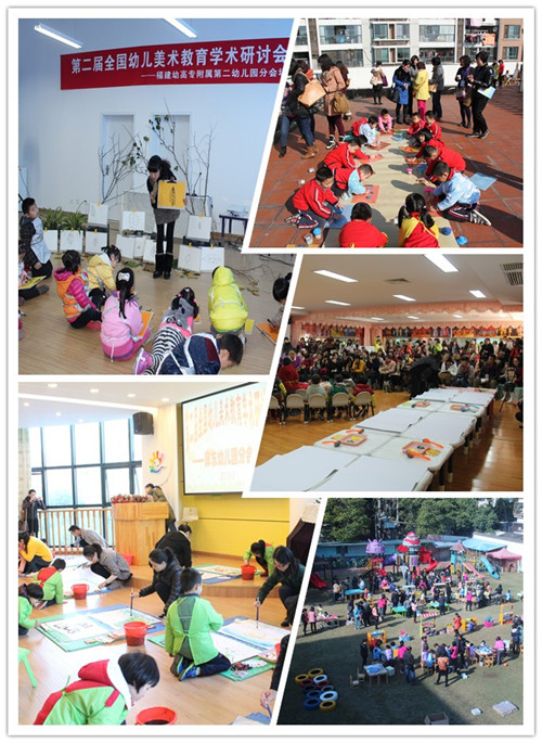 随着《3-6岁儿童学习与发展指南》的贯彻和落实,各地幼儿园在美术教育方面开展了许多有益的探索。为了进一步提高我国幼儿园美术教育质量,推进我国幼儿园美术教育的改革发展,并为各地幼儿园提供经验交流、成果共享的机会,2013年12月18-20日,由中国学前教育研究会幼儿园课程与教学专业委员会主办的"第二届全国幼儿美术教育研讨会"在福建幼儿师范高等专科学校隆重召开。本次研讨会放在福建幼儿师范高等专科学校举办,彰显了该校近百年师范教育办学历史的地位,展现了福建学前儿童美术教育研究中心富有地域特色的美术教育研究积淀和成果。本次研讨会开幕式由福建幼儿师范高等专科学校党委副书记王福阳教授致欢迎词,福建省教育厅基础教育处余志丹副调研员、中国学前教育研究会原副理事长唐淑教授、中国学前教育研究会课程与教学专委会秘书长孔起英教授、福州市教育局陈红副局长等应邀出席了会议,福建幼儿师范高等专科学校副校长、福建省学前教育研究会副理事长郑健成教授主持会议。来自全国各地近500名幼教工作者参加了会议。