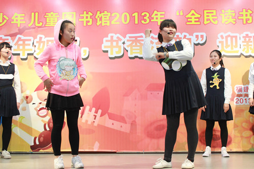 我校学前系、人文系儿童阅读推广志愿者,于12月28日参加福建省少年儿童图书馆举办的"全民读书月"系列公益活动——"童年如歌,书香流韵"迎新联欢会,在联欢会上表演了精彩节目。科普小话剧《小公主游蔬菜园》形象活泼地向孩子们展示科学饮食的重要性,儿歌串烧《老虎学本领》以富有动感的舞台表演展示了儿童韵语文学的魅力,演出现场气氛热烈,小读者积极参与互动。我校志愿者参与了本次演出的组织与引导工作,受到主办单位的充分肯定和在场观众的赞赏。