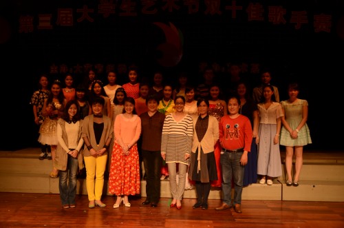 第三届大学生艺术节"双十佳歌手大赛"专业组和业余组比赛于2014年4月15、16日晚在我校礼堂举行,此项比赛由艺术系承办。光临本次歌手赛的领导老师有各系党总支书记、副书记,辅导员老师们,各系同学们也积极参与了此次活动。