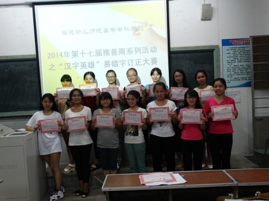 在经过一轮紧张的比赛之后,还有一部分选手的水平不相上下,打成平手。现场进行了第二轮PK。最终,外语系的范芬同学以其优越的成绩(120字写对117字),夺得此次大赛的冠军,获"汉字英雄"荣誉称号。赛后,范芬同学与我们分享了她夺冠的心得。范芬同学指出,此次的成功并非偶然,它需要的是平时的积累以及扎实的语文功底,最重要的还是,要有一颗勤奋好学的心。