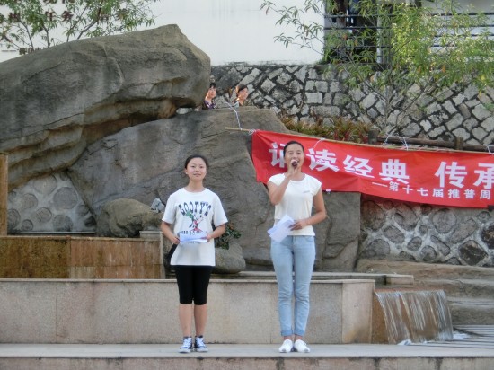 活动在下午十七时顺利结束。此次校园朗诵会,通过诵读经典诗文,使普通话更为大众喜爱与接受,并且弘扬中国文化,传承历史文明与经典。本次活动受到我校师生的一致好评。