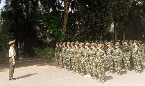 明媚的阳光撒向每一个角落,嘹亮的口号划过湛蓝的天空,校园里刮起一阵"迷彩风",绿荫场上的外语系2014级新生们成了一道亮丽的风景线。有力的口号此起彼伏,他们告别假期的慵懒,体验军训生活,磨练军人意志;欢快的歌声直冲云霄,展现了青年的活力,昭示青春热情,开启全新征程。