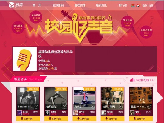 日前,由教育部思想政治工作司和国家互联网信息办公室政策法规局指导、易班网主办的全国高校"校园好声音"网络大赛省内选拔阶段已经完成。截至