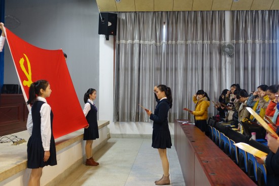 参加结业仪式的全体预备党员面向党旗庄严宣誓