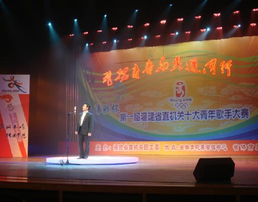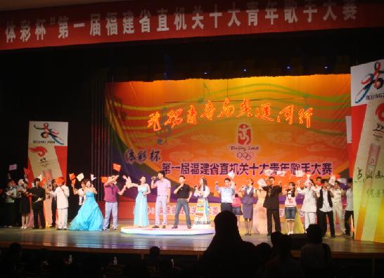 5月13日晚, 第一届"体彩杯"福建省直十大青年歌手大赛在福州大戏院隆重举行,场内星光闪耀,灯火辉煌,省直各单位齐聚一堂,共同观看此次比赛。