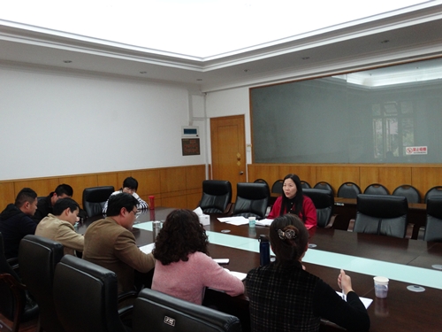 郑晓生副校长首先强调了此次调研的目的。随后,丁天华主任代表班子成员就我系办学规模、师资队伍、教学工作、师生获奖情况等方面工作作了汇报,并提出我系现存最大问题在于年轻女教师大多面临婚育问题,教师队伍不稳定,不利于我系工作的开展。林祥昊书记主要汇报了我系党总支组织机构设置情况及2015年党总支工作思路。林榕副主任、胡华荣副书记分别就分管工作的开展情况进行了简要陈述。党总支委员叶一青和任远两位老师也发表了来自一线教师的心声。