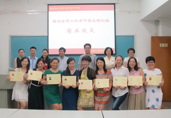 福建省幼儿园第二批骨干园长培训属于"福建省中小学名校长培养工程"项目,旨在培养一批政治思想坚定,办园视野开拓,管理能力突出的优秀园长。本期培训自2013年11月启动,历时近两年的时间。在培养期间,我校以幼儿园课程建设和幼儿园管理为两条主线,先后在福州、南京等地开展了六次集中研修活动。北京师范大学刘焱教授等知名专家莅临讲学。