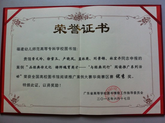 我校获全国高校图书馆阅读推广大赛华南赛区优秀奖