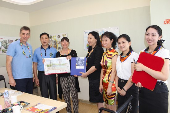 参观结束后,双方就两国儿童学前环境教育问题进行座谈交流。座谈会上,郑晓生副校长介绍了学校和幼儿园的办学情况,霍芙肯部长介绍了莱法州幼儿园开展环境保护教育的现状,展示了他们研发的环境教育教材。霍芙肯表示,幼儿园极具专业示范性,环保设施齐全,活动内容丰富,环境教育扎实有序开展,他希望幼儿园的环境教育实践课程能引入莱法州,加强双方的交流学习。