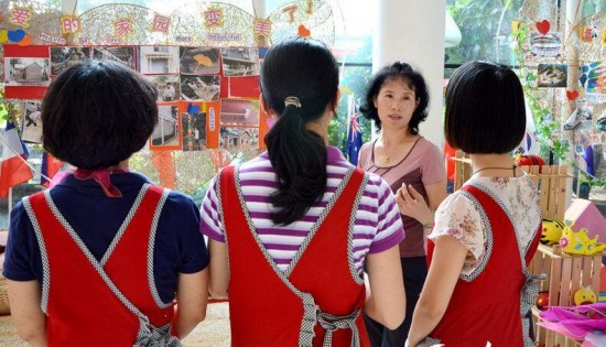 鹿海云给幼儿园里的年轻老师"上课"