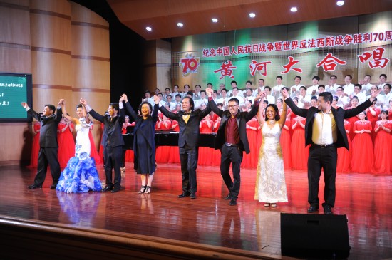 本场演出将《黄河大合唱》八个乐章完整演绎了出来,这在我省尚属首次,其中第三乐章《黄河之水天上来》是第一次亮相。福州九日台音乐厅爱乐合唱团与闽侯青橄榄合唱团承担合唱部分演出,中央歌剧院国家一级演员阮余群担任独唱,我校教师吴宗奎、程美华、矫璐娜、徐菁及七色花合唱团部分团员参加演出。