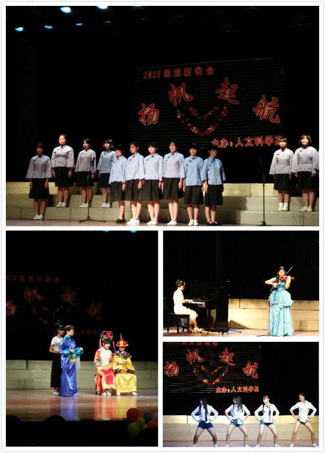 为迎接2015级新同学,进一步丰富学校文化生活,10月27日晚,我系在学校礼堂隆重举行"扬帆起航"2015级迎新晚会。全系师生共同观看了当晚的演出。