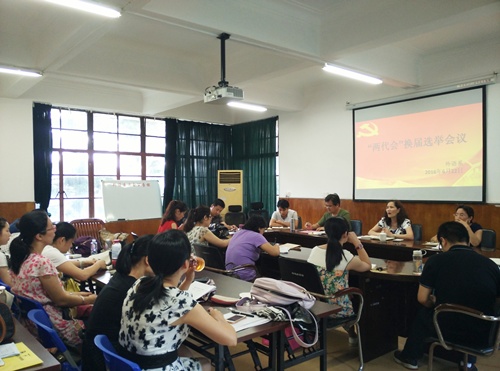 为全力配合校第三届"两代会"各项工作的顺利开展,外语系于6月22日下午在系办306召开全体工会会员大会,组织选举学校第三届"两代会"外语系代表。会议由系党总支林祥昊书记主持。