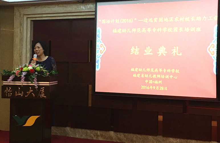 最后,我校校长、本期培训首席专家郑健成教授对本次国培 工作、课程设置、师资队伍、日常管理和培训效果等方面进行 了总结,对支持国培计划工作的学校领导、职能部门、各影子 研修基地幼儿园等单位和个人,对坚持研修的学员表示感谢, 并寄语参训园长能够将此次国培作为自身专业成长的契机和新 起点,积极推动园所的发展与改革,为提高中西部农村学前教育 质量做出自己积极的贡献!