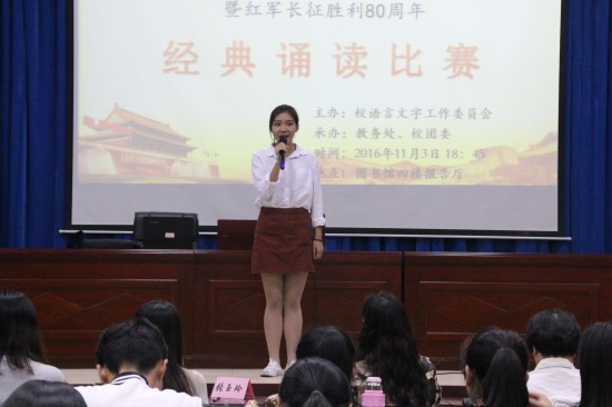 此项赛事由我校语言文字工作处、教务处、团委及公共教学部共同举办,大赛历时一个多月,从各系初赛到全校性复赛和决赛,经过层层选拔,最终角逐出六位选手进入总决赛。