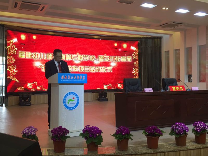 3月8日上午,福建幼儿师范高等专科学校与福安市教育局"结对子"合作项目的签约授牌仪式在福安市实验小学教育集团阳泉校区举行。福建幼儿师范高等专科学校党委书记鲍仕梅、福安市市委常委、宣传部长吕增华,福安市人民政府副调研员张为明等领导专家,福建省乡村教师素质提升工程--小学音乐、小学美术学科省级培训的一百名学员们,以及福安市部分艺术教师参加了此次活动。本次签约仪式及培训活动由福建幼儿师范高等专科学校、福建省学校美育与艺术教育研究中心主办,由福安市教育局承办。