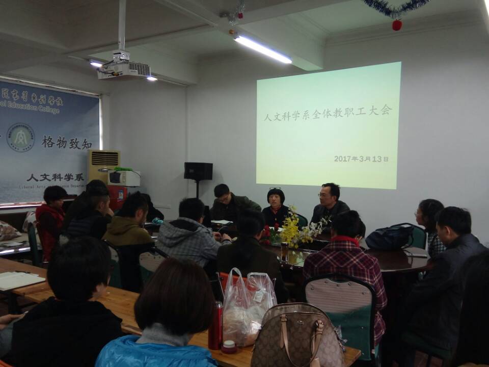 3月13日中午,人文科学系在系办601会议室召开学生意识形态工作专题会议。全体教职工参加了会议,会议由系总支林琳书记主持。