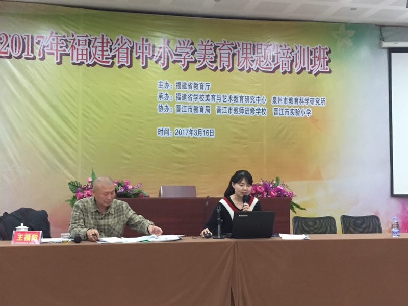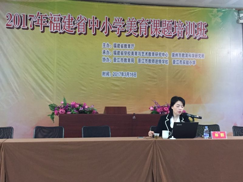 2017年福建省中小学美育课题培训班会期两天,今天上午来自基层一线的美育教师首先对晋江实验小学美育开展情况进行观摩,展演汇报结束后,省学校美育与艺术教育研究中心的王萍萍教授和林群教授分别就《教育部与福建省人民政府美育备忘录》、《福建省人民政府办公厅关于全面加强和改进学校美育工作的实施意见》进行解读,中心王福阳教授为全体培训学员带来《学校美育的内涵及其发展变革研究》的专题报告,今天下午还将就《关于做好全省美育专项课题研究若干问题的意见》与培训学员进行交流研讨, 部分课题负责人交流课题研究计划,提出困惑。