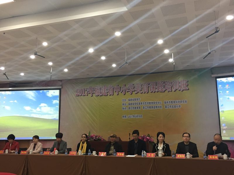 3月16日上午,2017年福建省中小学美育课题培训班在晋江市实验小学开班。该培训班由省教育厅主办,省学校美育与艺术教育研究中心、泉州市教育科学研究所承办,由晋江市教育局、晋江市教师进修学校、晋江市实验小学协办。莅临开班仪式的领导专家有福建省学校美育与艺术教育研究中心主任王福阳教授,副主任王萍萍教授,林群教授,泉州市教育局副局长徐昌裕,初幼教科科长陈军宣,晋江市教育系统党委副书记蔡朝阳等;来自省内美育教育专家、全省中小学美育科研项目负责人、课题组骨干成员以及来自泉州、晋江的艺术教研员、艺术教师200余位参加此次活动。