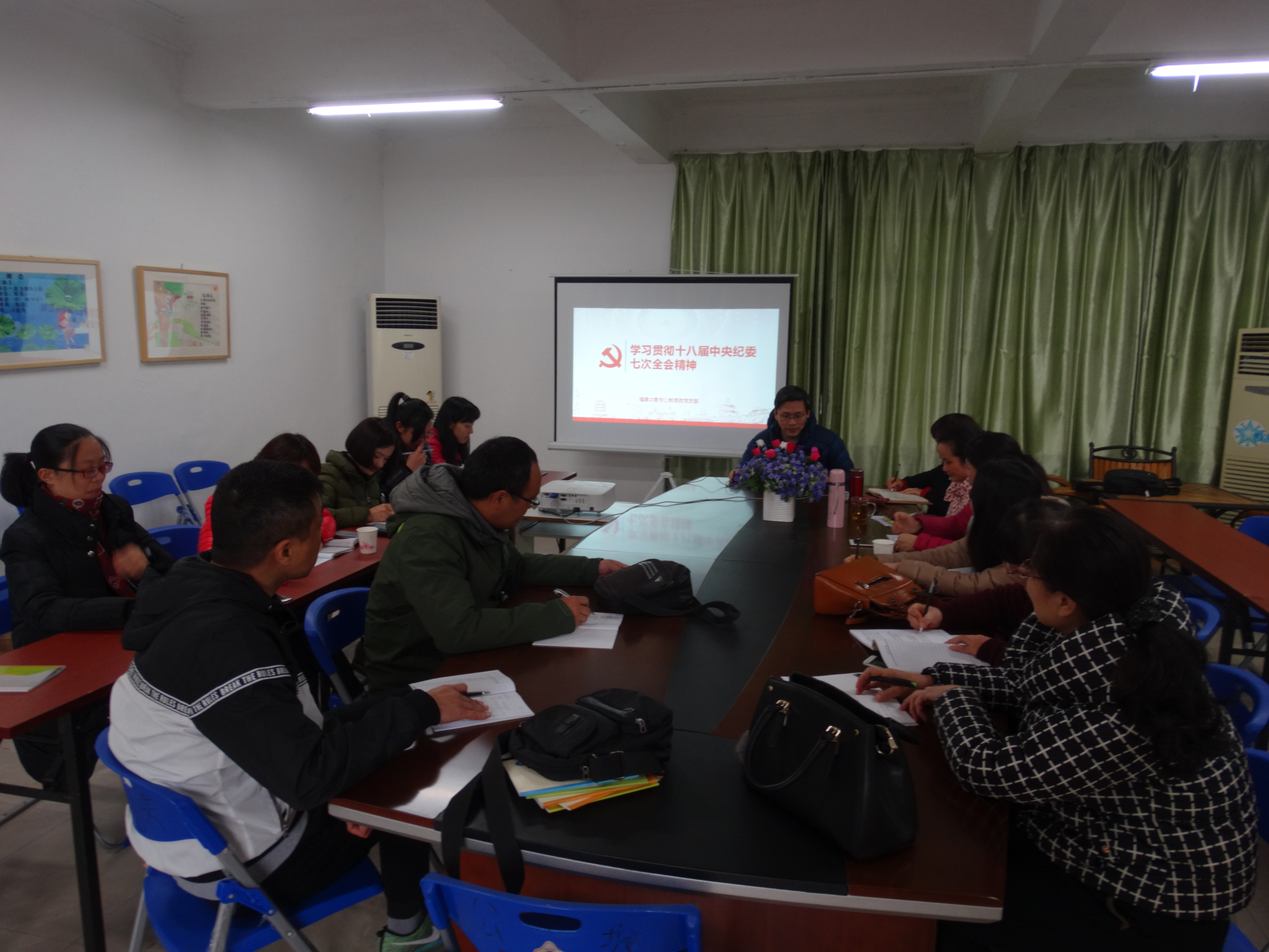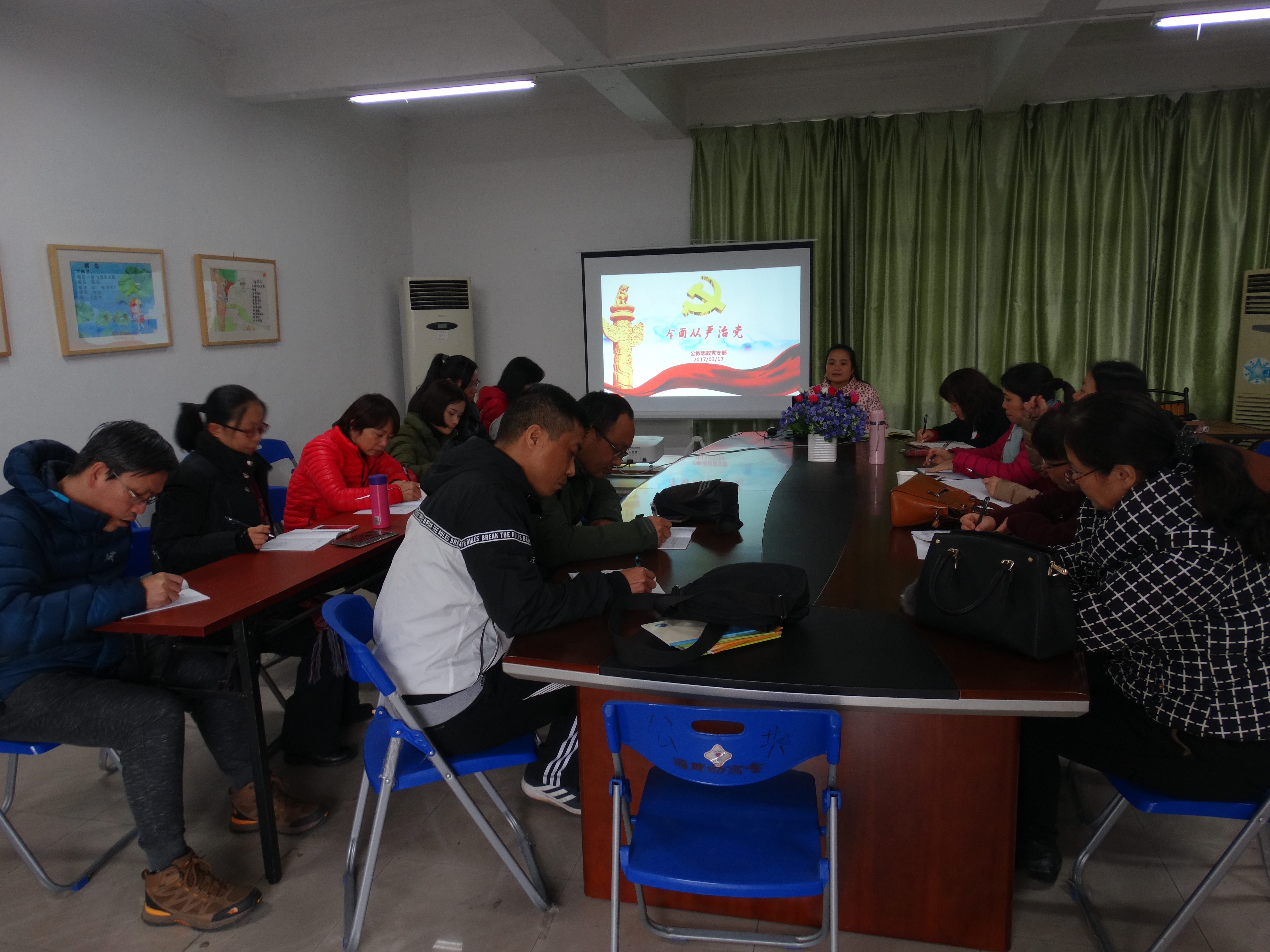 3月17日下午,公教思政党支部组织全体党员开展思想正政治理论学习。陈香珠书记做"全面从严治党"的专题演讲报告,纪检委员张航老师为全体党员解读了习近平在十八届中央纪委七次全会上发表的重要讲话、王岐山在十八届中央纪委七次全会上的工作报告、中共福建省纪委十届二次全会工作报告。全体党员认真听讲,深刻领会,并做好笔记。