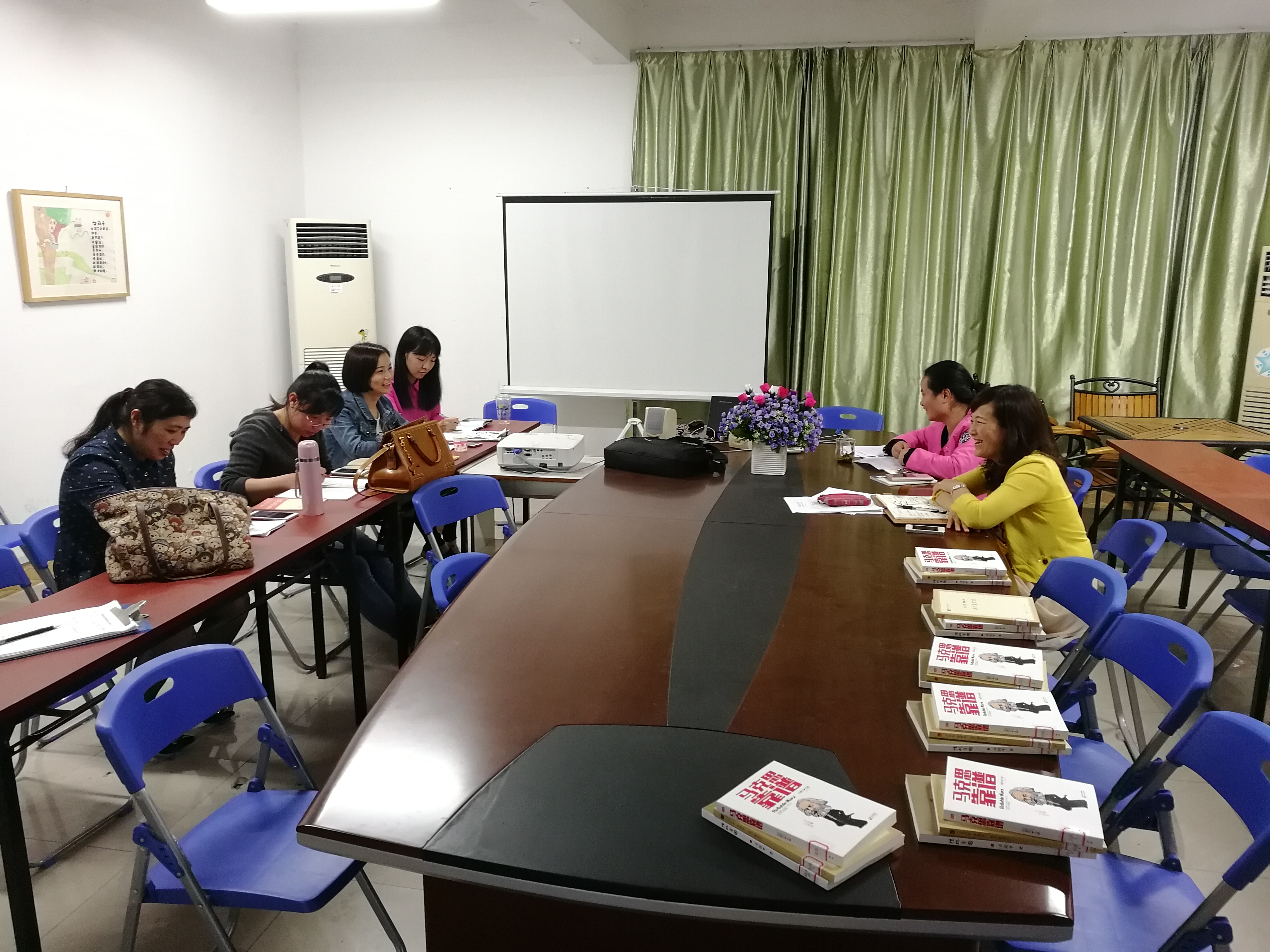 2017年4月20下午两点,全体思政部教师在系部506会议室召开本学期期中工作总结会议。思政部主任伊文婷老师主持本次会议。部门各项活动负责人分别汇报了本学期校马列经典读书社与校辩论社活动的开展情况,校辩论赛与"一马当先"知识竞赛的筹备情况以及微课拍摄的准备工作。会上还讨论了部门网站建设、本学期公开课等问题。伊文婷主任总结了各项活动在前期开展中取得的成绩和存在的不足,并对各项活动的后续工作进行了布置。