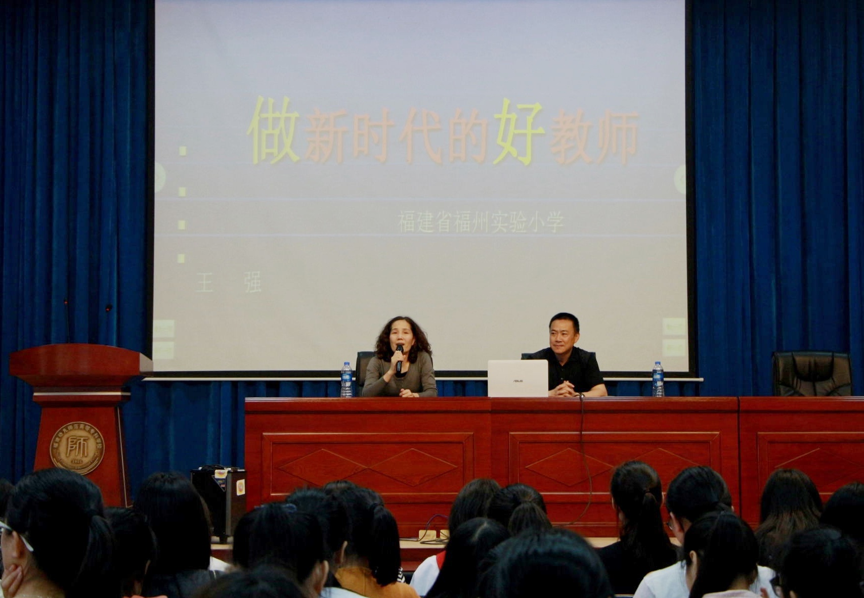 4月21日,福建省福州实验小学王强副校长莅临我校,为外语系2015、2016级全体学生开展了一次关于"如何做新时代的好教师"的主题讲座。