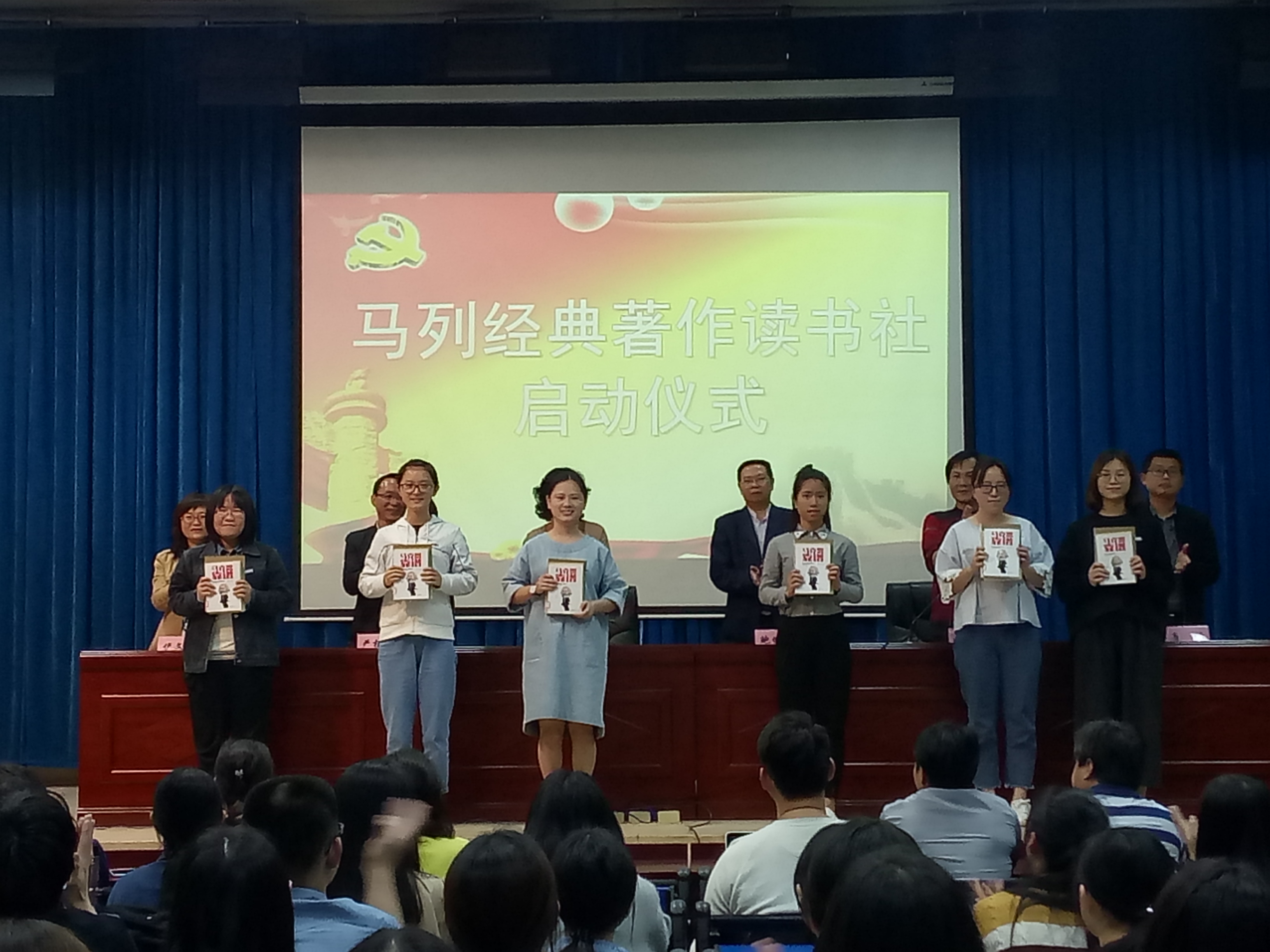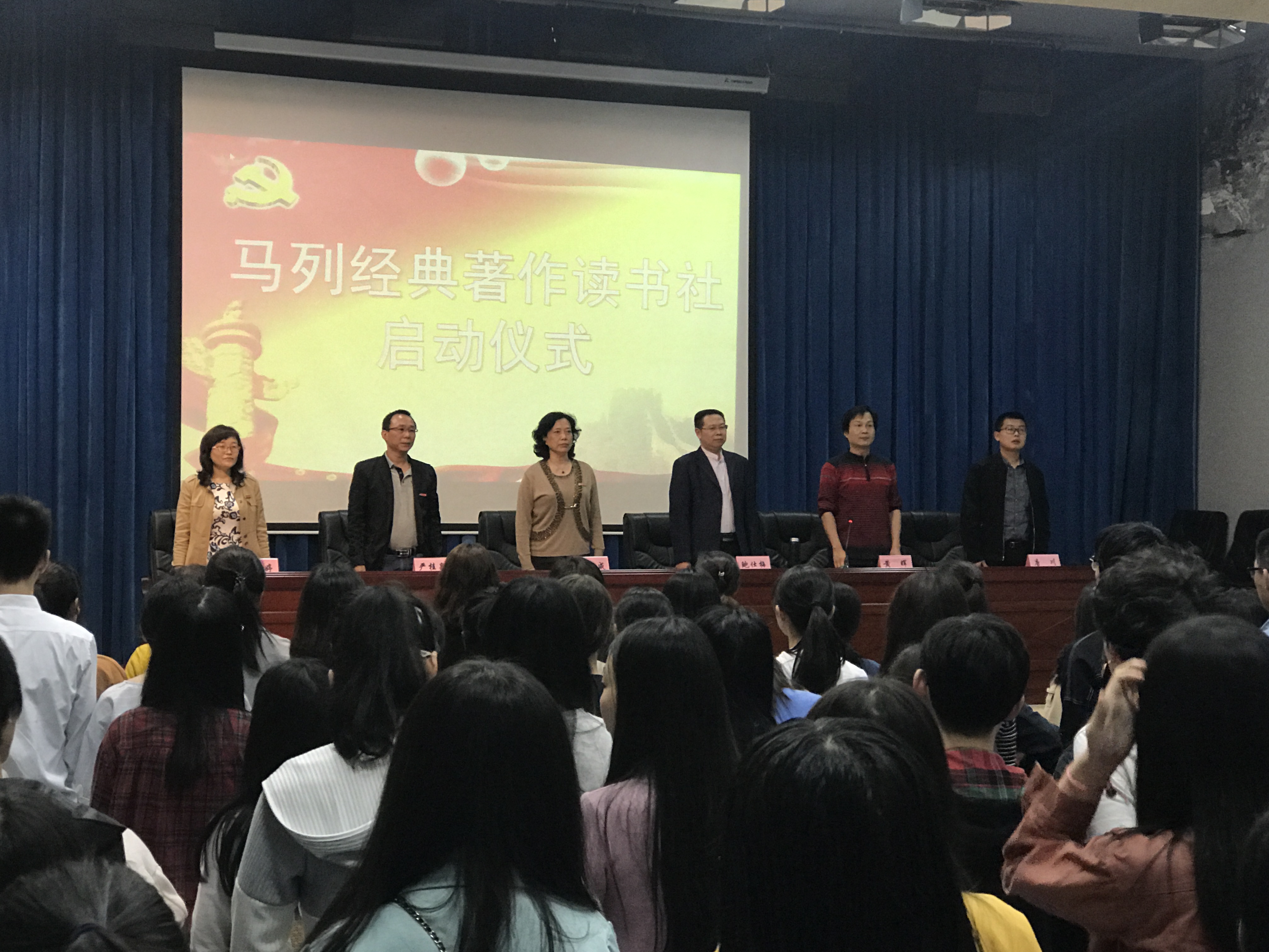 4月25日晚,我校在图书馆学术报告厅举行马列经典著作读书社启动仪式。校党委书记鲍仕梅、校长郑健成、相关部门负责人及思政部全体教师、读书社全体社员参加了启动仪式,启动仪式由党工部部长黄晖主持。