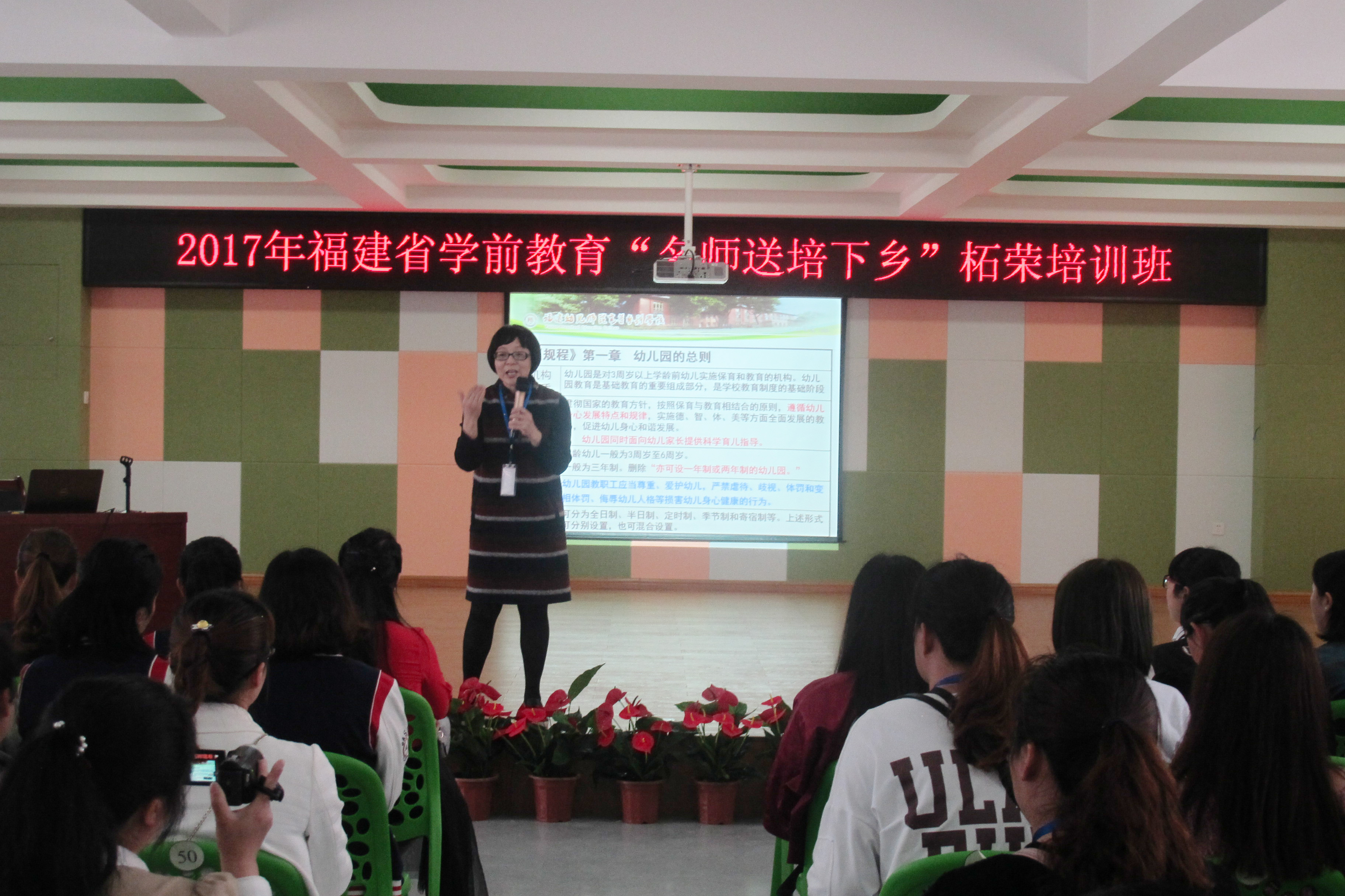 4月25至28日,福建省学前教育名师讲学团赴柘荣县开展"送培下乡"活动,全县200名幼儿园正副园长、教研组长、教导主任、骨干教师等参加了本次培训活动。