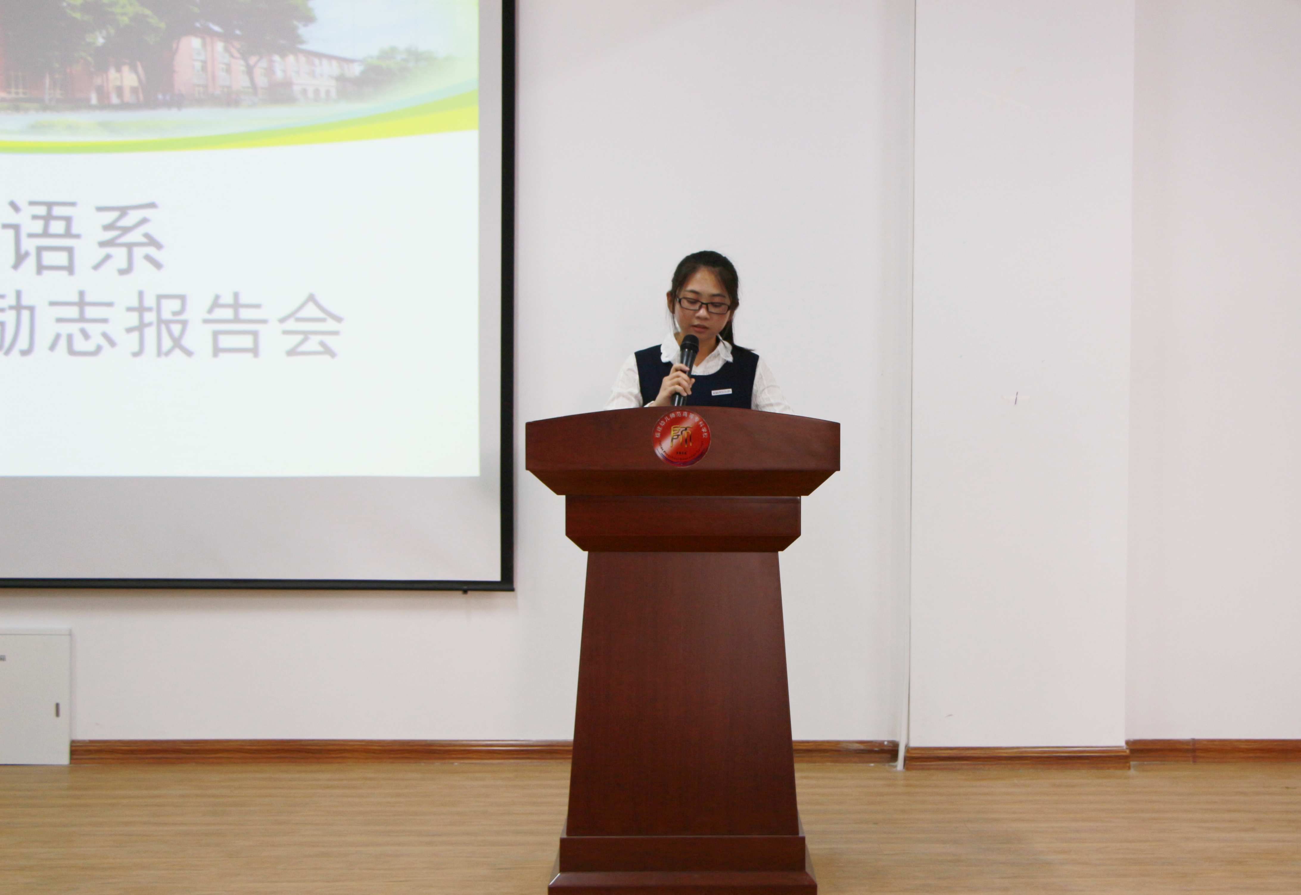 本次报告会在播放我系12级毕业生赖艺凤同学"走教"事迹视频中拉开序幕,并由现场学生朗读其事迹。通过对赖艺凤同学扎根于家乡农村教育先进事迹的学习,增强学生们献身祖国教育事业尤其是基层教育的理想信念。接着报告会在四位学生的演讲中进入正题,四位同学分别为学前教育(英语方向)1511班吴淑美、郑雅芳,英语教育1514张美钰、张萍,分别以《前行的路垒成生命的高度》、《心怀感恩、励志前行》、《心怀感恩、扬帆追梦》、《以梦为马,不负年华》为主题做励志报告,从自身成长经历、新生适应、学业进步、感恩家庭、感恩社会等角度,与在场的师生们分享了她们在大学校园学习、生活的经验和感悟,把外语系人的自强不息、艰苦奋斗的精神传递给每一位新生。值得注意的是,四位同学在主题报告会中都强调了"感恩"这一主题,在讲述自身努力拼搏的同时,都表达了对父母、对学校、对社会的感恩之心。"感恩是大海中的灯塔,给我们指明道德的方向;感恩是沙漠中的绿州,给了我们期待美好生活的希望。我们相信,只有懂得感恩的人,才会发现这个世界是多么的绚丽、多么的美丽!"一位同学在演讲中如此讲述感恩。"鸦有反哺之义,羊有跪乳之恩",感恩是中华民族的优良传统,知恩、感恩是做人的基本品德,我系学生励志报告会中的主题,正反映出我系一直以来大力弘扬传统优秀文化的良好氛围。