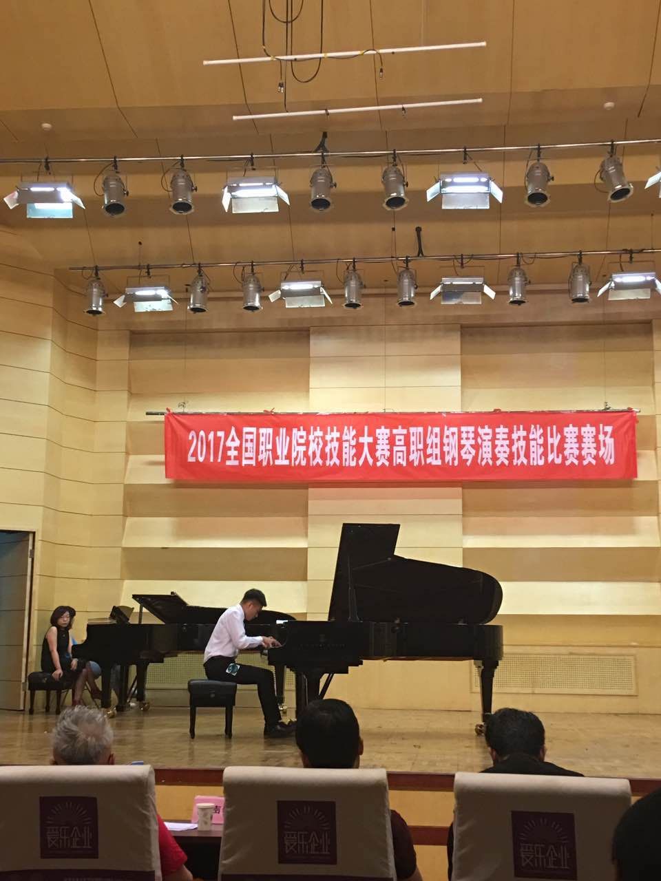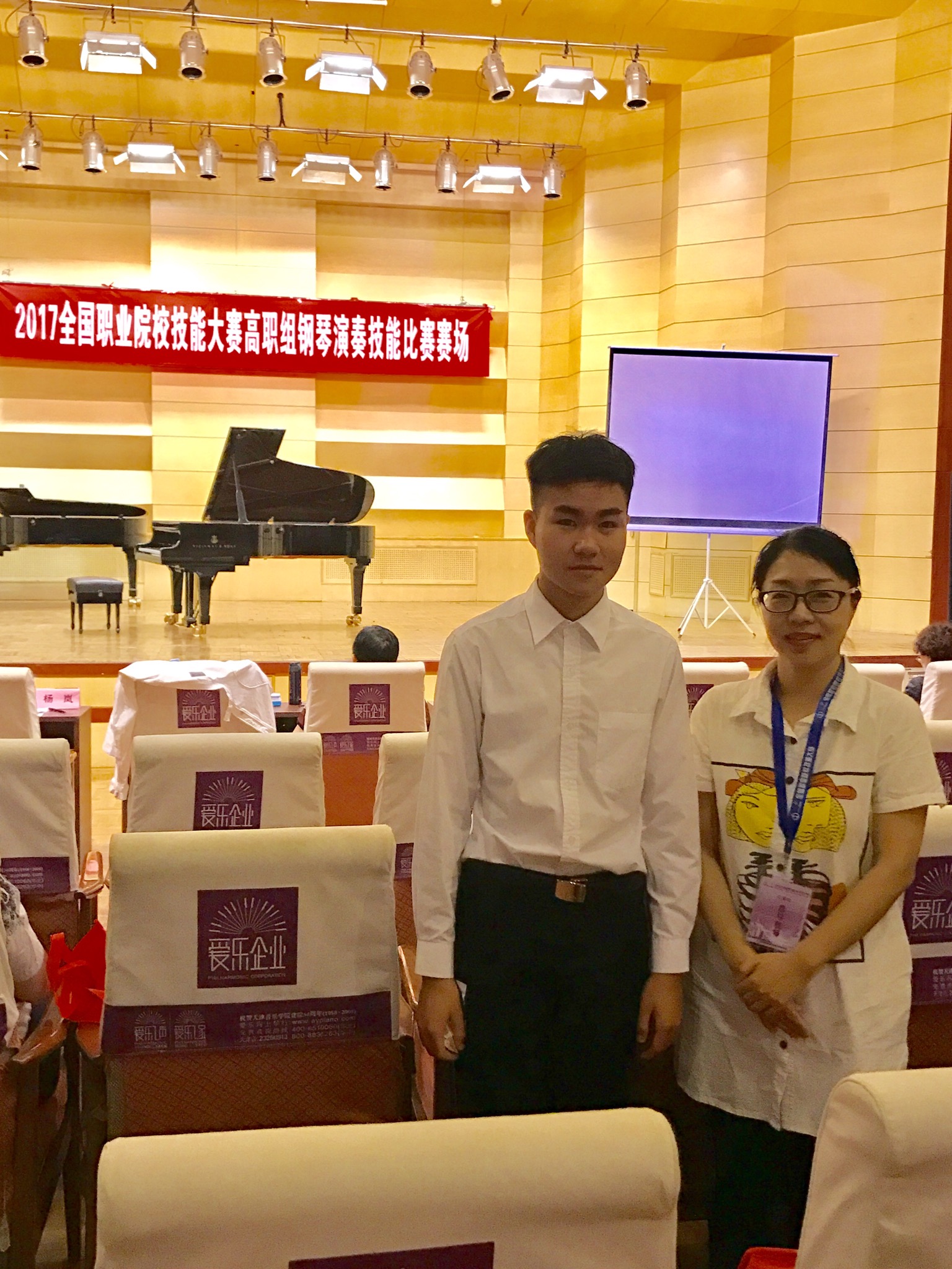 我校艺术系艺术教育13级江若松同学于2017年5月9日—12日代表福建省(全省仅两个参赛名额)参加在天津举办的2017年全国职业院校技能大赛高职组钢琴演奏技能比赛中获得一等奖的好成绩,其指导教师艺术系键盘教研室主任王政副教授也同时获得优秀指导教师奖。
