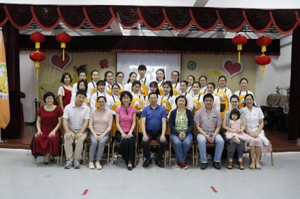 讲座结束,鲍仕梅书记还与2017年外派教师进行亲切座谈,验收实践培训成果展,观看了外派志愿者教师自制的培训成长视频、自编自导自演的节目,充分肯定了新任外派教师们的成长与进步,勉励和关爱外派志愿者教师不仅要做好本职工作,更要重视团队协作,凝心聚力,加强与国内师长的联系,让祖国亲人放心,给祖国和母校交一份满意的答卷。
