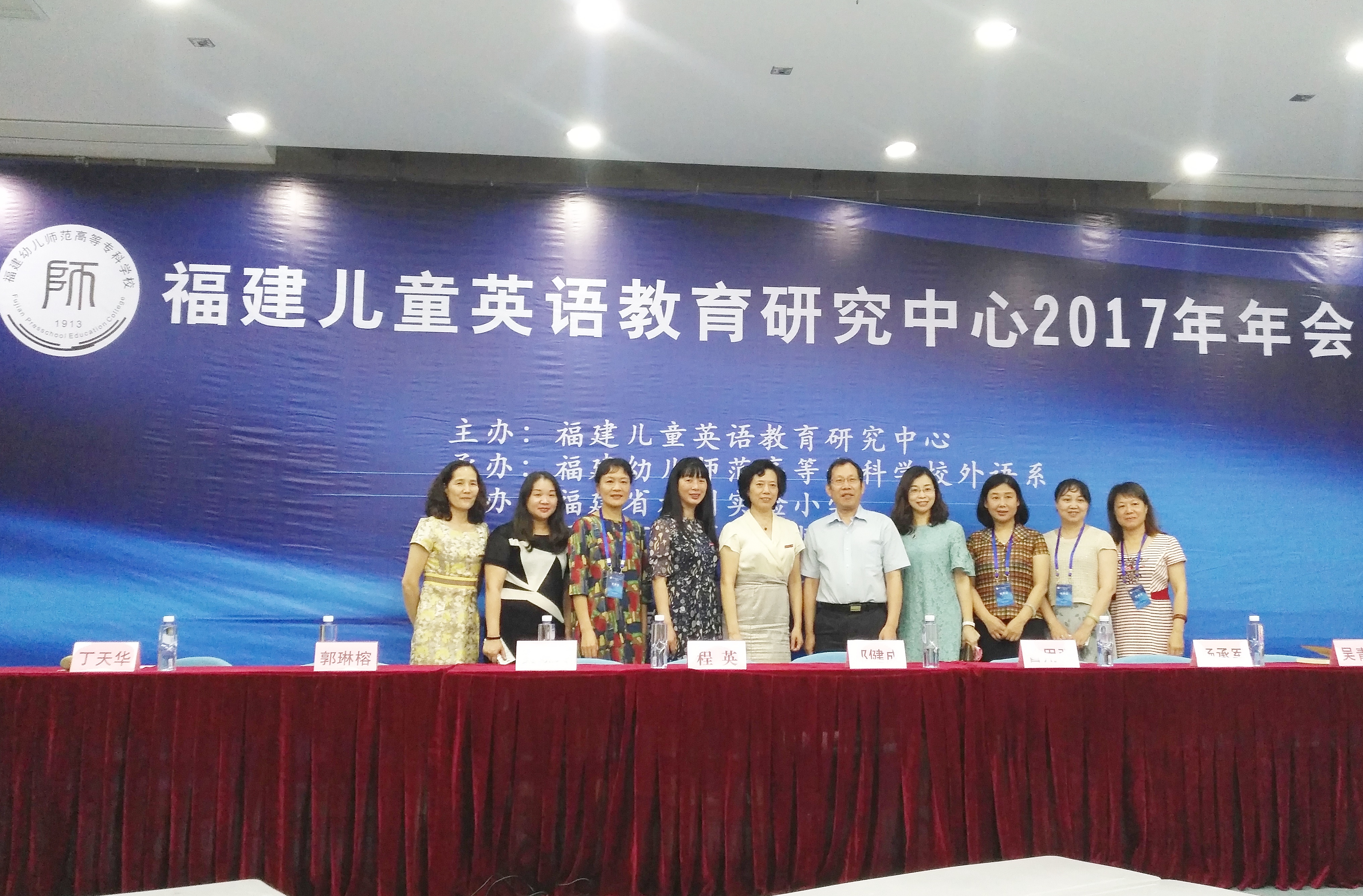 6月2日上午,福建儿童英语教育研究中心2017年年会在福建省福州实验小学隆重召开。本次年会由福建儿童英语教育研究中心主办,福建幼儿师范高等专科学校外语系承办,福建省福州实验小学、福州市陈育平名师工作室以及外语教学与研究出版社共同协办。广东外语艺术职业学院院长曾用强教授、福建幼儿师范高等专科学校校长郑健成教授、副校长郑晓生教授、教科所所长程英教授以及省普教室教研员、部分小学领导应邀出席,年会由丁天华主任主持。