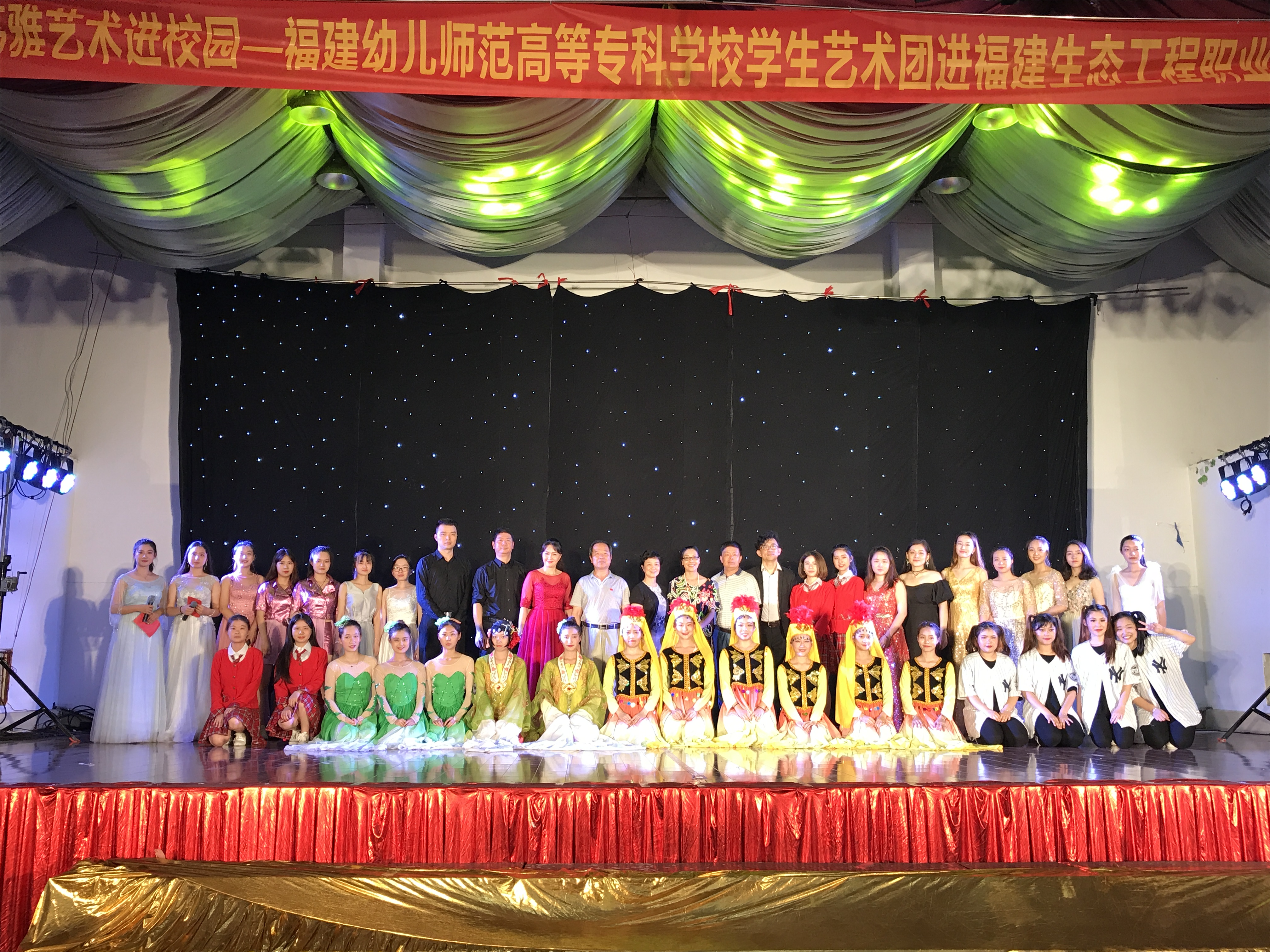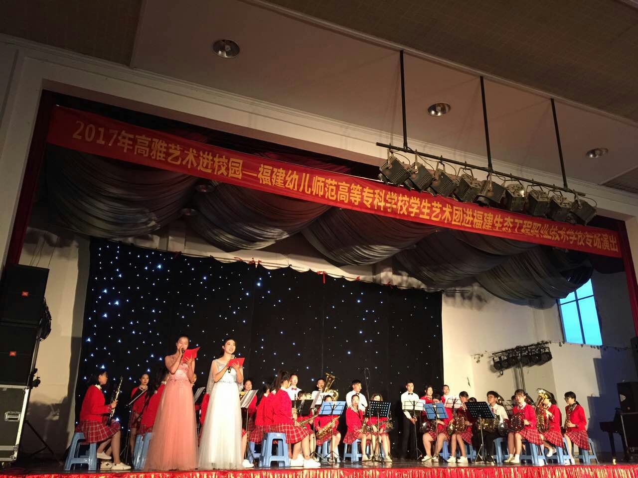 6月12日晚上7:00,我校小榕树艺术团承接的福建省教育厅"2017年高雅艺术进校园"活动,在福建生态工程职业技术学校进行首场演出,福建生态工程职业技术学校书记、校长俞白楠同志及学校师生300多人观看了演出。小榕树艺术团高质量、高品位、接地气的演出得到福建生态工程职业技术学校领导老师、同学们的一致好评,充分展示了我校学校美育工作成果。