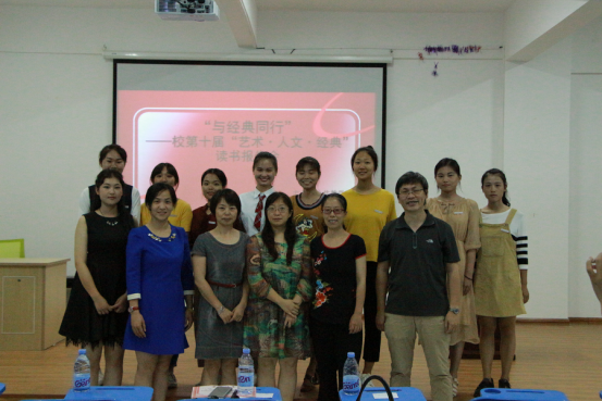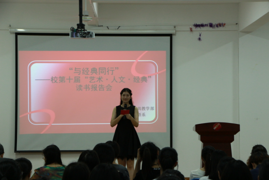 为培养学生的自主学习能力,提升学生的文学素养,由校公共教学部主办、外语系承办的"与经典同行"——校第十届"艺术·人文·经典"读书报告会决赛于6月13号晚上7点在综合楼实训室312进行。担任本次决赛的评委老师有公共教学部公共中文教研组的苏萍、兰芳、杨晨、张航老师,外语系团总支书记陈小红和四个系共120名学生共同参加本次活动。