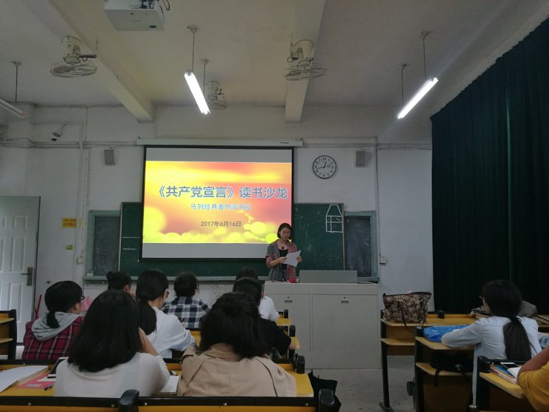 6月16日下午,A102教室内书香袭人,气氛热烈。马列经典读书社举行了《共产党宣言》读书沙龙活动。思政部郑丽萍老师、郑舒丹老师与30余位读书社的成员,一起交流与分享了《共产党宣言》一书的读书心得。