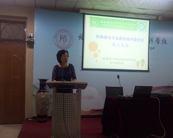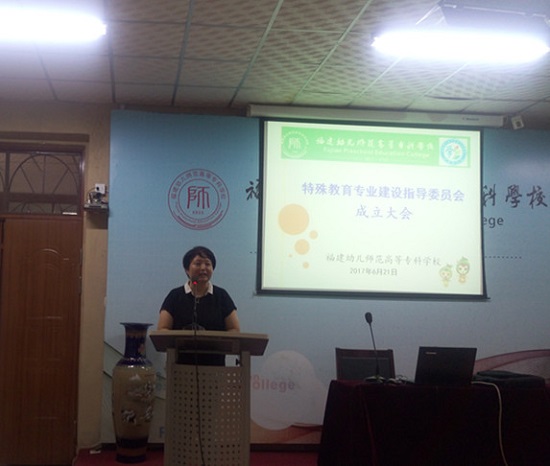 为响应国家重视发展学前儿童特殊教育的号召,拓展学前教育系新的专业发展,2016年底我校申报特殊教育专业(儿童康复方向),2017年2月正式获批。6月21日,首届特殊教育专业建设指导委员会成立大会在校部101会议室隆重召开,进一步创新校校合作机制,加快特殊教育专业建设和发展。我校郑健成校长,福州市星语学校校长、福州市盲校吴淑英书记,福州市聋哑学校李朝霞校长,福建省普教室心理和特教教研员程奇老师,厦门市特殊教育康复教育研究中心、厦门市心欣幼儿园黄总志主任,我校教务处温永选处长、人事处陈凤玉处长、科研处程英处长,学前教育系领导班子和全体老师、优秀学生代表共同出席会议。